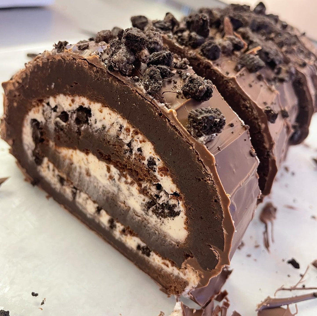 Oreo brownie log slices